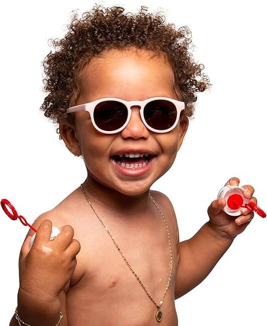 Designed with both comfort and practicality in mind, the sunglasses include a detachable adjustable strap for a secure fit and are made from practically unbreakable materials—ideal for active little ones.