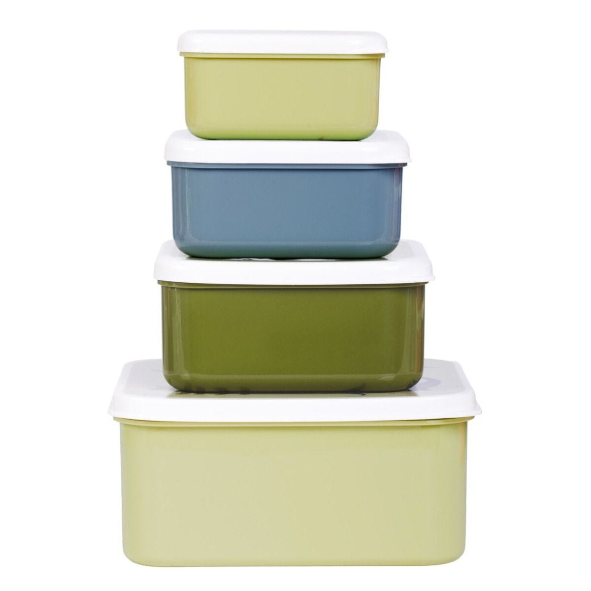 Set of four lunch and snack boxes in four different sizes and matching designs. They come in cheerful and colourful themes, making lunchtime even more enjoyable.