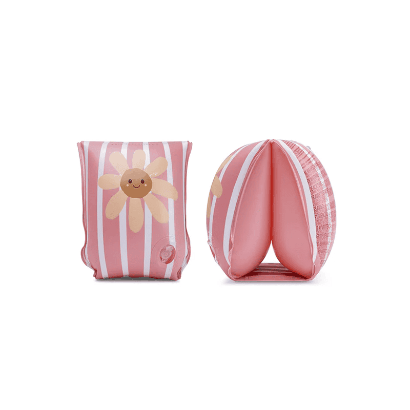 Featuring a playful daisy flower print in soft pink and white tones, these armbands bring a fresh summer vibe to every splash. Made from durable PVC, they provide reliable buoyancy and comfort, making them an ideal swimming aid for young beginners.