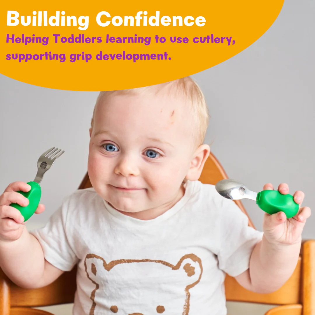 The Toddler Cutlery Fork & Spoon sets are designed for toddlers ready to eat all by themselves.