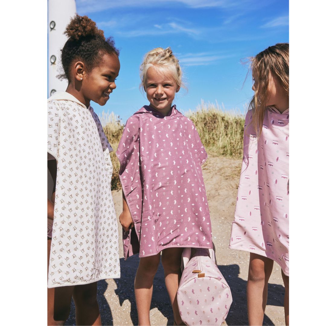 Made from durable, ultra-absorbent Terry fabric with UPF50+ protection, it also includes a hood for quick hair drying.